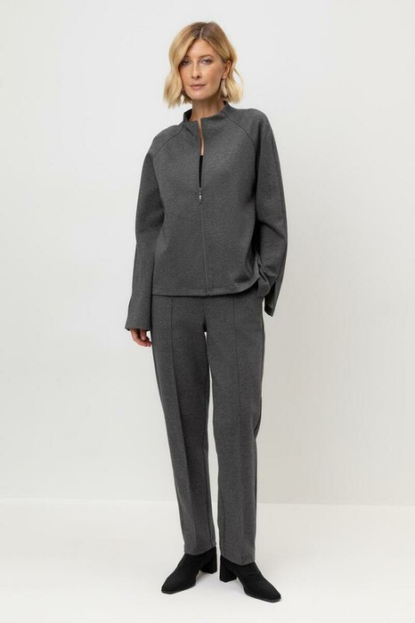 Брюки прямого кроя со стрелкой и боковыми карманами из плотного гладкого трикотажа интерлок. В составе 80% натурального хлопка и 20% полиэстера, при этом полиэстер ввязан внутрь по особой технологии и не соприкасается с кожей.