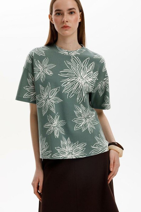 Совместные покупки Курган Женская одежда Футболки — 06.04 Very Neat фуфайка жен ЕВТ 3317/зеленый,крупные астры