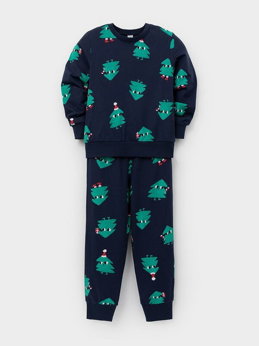 Новогодняя пижама из натурального хлопка. Джемпер с длинными втачными рукавами и брюки с эластичной резинкой в поясе. Мягкие манжеты на рукавах и по низу брюк. Пижама отлично подойдёт для создания уютных домашних образов или в качестве подарка на Новый год и Рождество. Оригинальная набивка выполнена из стойких текстильных гипоаллергенных красителей. Изделие сохраняет цвет и форму после многократных стирок. Все трикотажные полотна производятся в соответствии с нормами швейцарского сертификата ЭкоТекс.