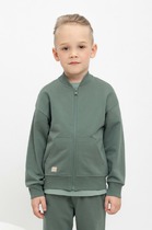 Бомбер для мальчика с контрастными рукавами из мягкого трикотажа. В составе 80% натурального хлопка и 20% полиэстера, при этом полиэстер ввязан внутрь по особой технологии и не соприкасается с кожей. Воротник, манжеты и пояс - вязаные. Застёгивается на молнию. По бокам два удобных кармана.