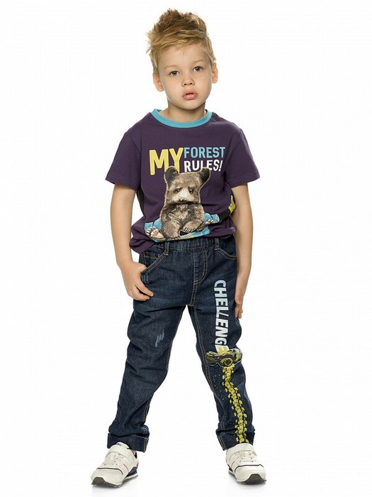 Джинсы для мальчиков на флисе умеренного объёма и отворотами по низу брючин, пояс из основной ткани на резинке с внутренней регулировкой объема, вертикальный принт Вызов принят.