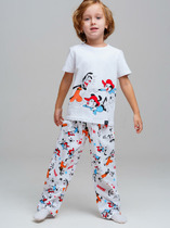 Стильная и уютная пижама в скейтерском стиле для мальчика. В составе ткани 100% хлопка — идеально для детской одежды! Модель приятна на ощупь, прекрасно пропускает воздух, позволяя коже ребёнка дышать. При этом в пижаме из хлопка ребёнку будет тепло, даже если он сбросит одеяло. Всё это обеспечивает комфортный и качественный сон. Джемпер и брюки среднего объёма, плечо немного спущено, рукава широкие и свободные — пижама на мальчика очень удобна для сна. Широкие и мягкие резинки в поясе и по низу брюк не перекручиваются и не давят. Отделка горловины из эластичной рибаны — она не растягивается, ребёнку удобно надевать и снимать пижаму. Брюки однотонные, голубого цвета. Джемпер в полоску украшает позитивный принт в виде облачка в бейсболке на скейтборде. Надпись переводится: "держи свой разум в счастливом месте". В линейке представлены следующие размеры: 1 (86); 2 (92); 3 (98); 4 (104); 5 (110); 6 (116); 7 (122); 8 (128); 9 (134); 10 (140); 11 (146). Хлопковый комплект идеален для сна как дома, так и в детском саду — прекрасный выбор для вашего ребёнка! Пижама с брюками подходит для круглогодичного использования. Домашний комплект — замечательный подарок сыну, внуку, брату на любой праздник. Выбирайте нужный размер по таблице размеров на фото. Цвет товара на экране вашего устройства может отличаться от цвета изделия вживую.