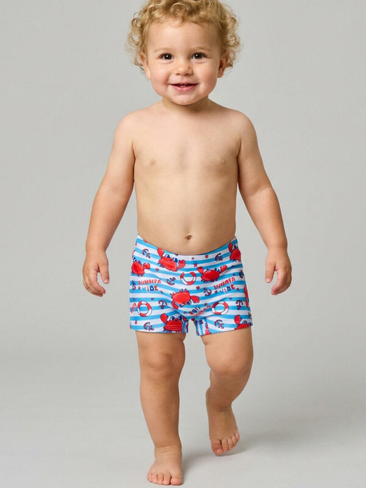 Плавки-шорты детские средней длины, прилегающего силуэта для мальчика. Изготовлены из эластичного трикотажа, с подкладкой для большего комфорта. Ткань устойчива к солнцу и солёной воде, благодаря UF-защите сохраняет насыщенность цвета и структуру волокон. В поясе — удобная резинка и регулируемый шнурок.
