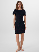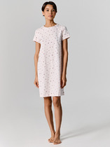 Сорочка женская из гладкокрашеного вискозного трикотажного полотна, свободного покроя, слегка расширенная к низу, с втачными рукавами - «крылышками», выполненными из кружева и втачанными в верхние части пройм. Расширенная иуглубленная горловина с кружевными отделочными деталями и сборкой по центру, окантована основным материалом.