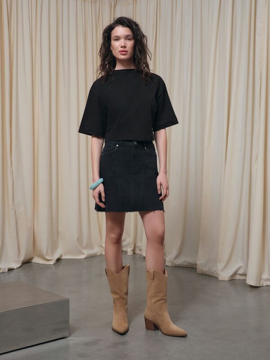Чёрная джинсовая юбка-mini с декоративными рельефными швами идеально подойдёт для ваших лаконичных и смелых стилизаций, будь то повседневный выход или вечернее мероприятие.