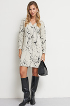 Платье из футера со спущенной линией плеч и разрезом станет основой для множества расслабленных базовых образов, а также может быть стилизовано для умеренно деловых и вечерних аутфитов.