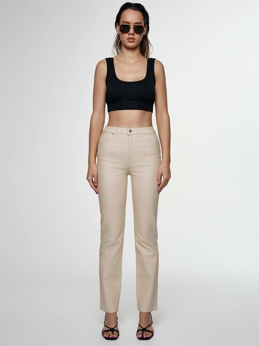 Джинсы «под кожу» в теплом оттенке ecru подойдут девушкам с разными типами фигуры: благодаря высокой посадке, прилеганию в области бедер и прямому крою штанин модель отлично подчеркивает силуэт.