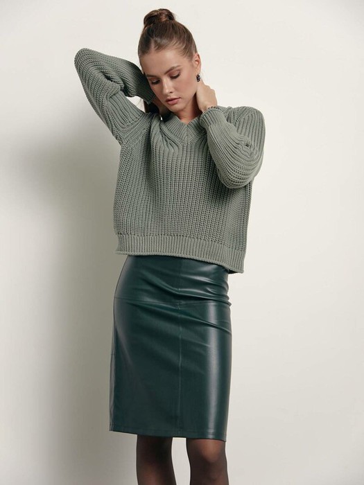 Юбка прямого силуэта «под кожу» LU 1410 подчеркивает силуэт, визуально удлиняет ноги и делает талию заметно тоньше. Благодаря плотному полотну юбка прекрасно сидит по фигуре, не теряет форму и дарит ощущение комфорта в течение дня. Для создания бунтарского посыла и скрытой сексуальности рекомендуем дополнить образ oversize-пуловером. Для повседневного гардероба выбирайте базовый джемпер или рубашку. · высокая посадка на талии· длина midi· прямой силуэт· плотное облегание по талии и бедрам· застёжка сзади на металлическую молнию· рельефные линии· интригующий разрез сзади· напыление «под кожу· сохранение формы и цвета при соблюдении рекомендаций по уходу· создана, чтобы стать основной для множества стильных образов.