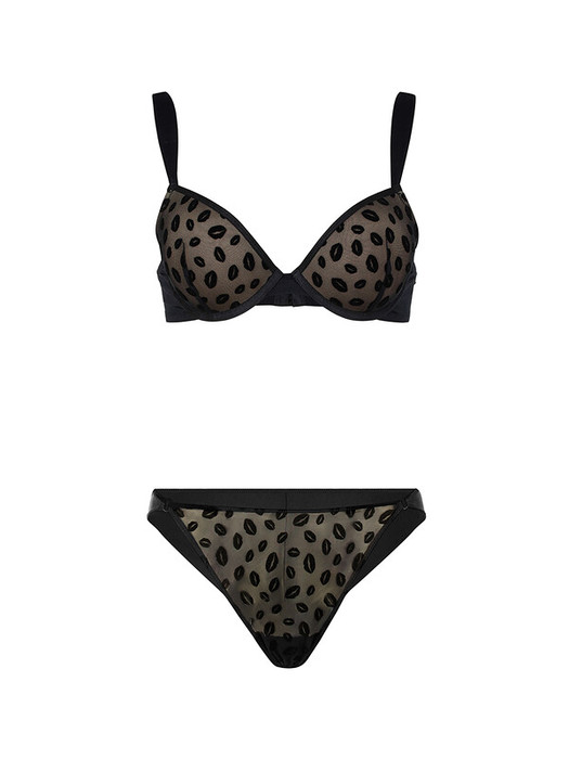 Бюстгальтер Padded bra выполнен из сетки с флок-принтом " поцелуй" на бежевой формованной чашке   с push-up в размерах  70ABС, 75ABС, 80B, без push-up  в размерах 75D, 80CD, 85BC, на каркасах, без боковых корсетных вставок. Застежка на два крючка и три ряда петель.Передние бретели фигурные выполнены из полотна. Бретели регулируемые, не отстегивающиеся.Ширина бретелей на объемы 70, 75 и 80 см с чашками А,В,С - 10мм, на объемы 75, 80 и 85 с чашками D  и размер 85С - 15 мм