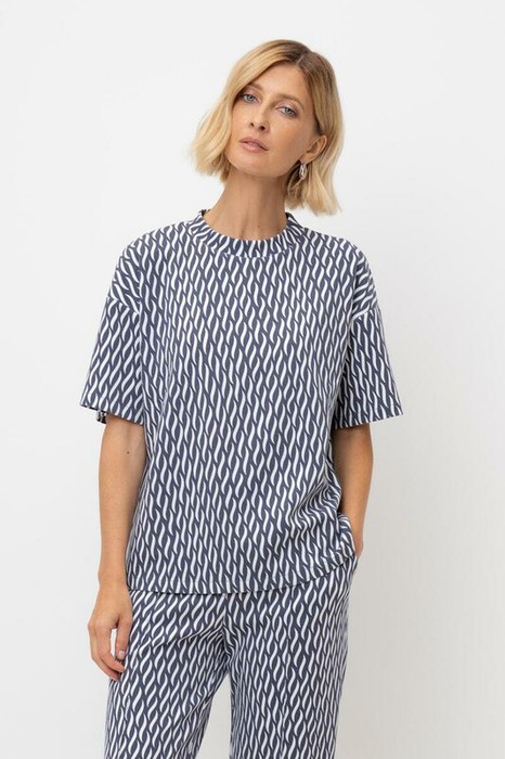 Блуза прямого силуэта со спущенным рукавом, изготовленная из премиального трикотажного полотна DOUBLE FACE. Мягкий на ощупь трикотаж выполнен из выскокачественной гребенной пряжи, а его дизайн добавляет летнего настроения.