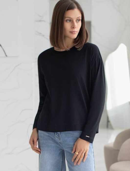 Совместные покупки Курган Женская одежда Джемперы, свитеры, водолазки — 21.04 Vilatte Базовый лонгслив из премиального хлопка с эластаном D49.147 черный