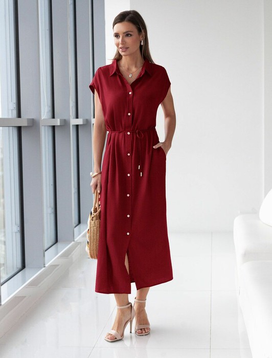 21.04 Vilatte Длинное платье-рубашка с поясом и разрезами изо льна с вискозой D2