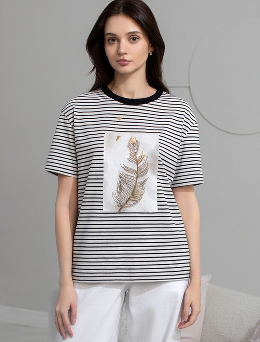 Совместные покупки Курган Женская одежда Футболки — 21.04 Vilatte Футболка D49.145 белый-черный_перо