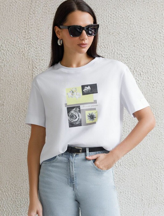 Совместные покупки Курган Женская одежда Футболки — 09.04 Vilatte Футболка D49.145 белый_flower_power