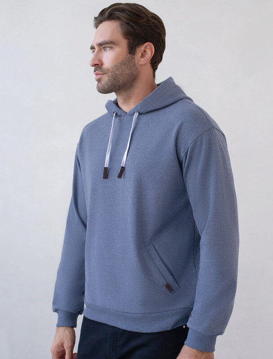 Совместные покупки Курган Мужская одежда Толстовки — 21.04 Vilatte Худи из эластичного футера трехнитки с эффектом меланж U49.039 син