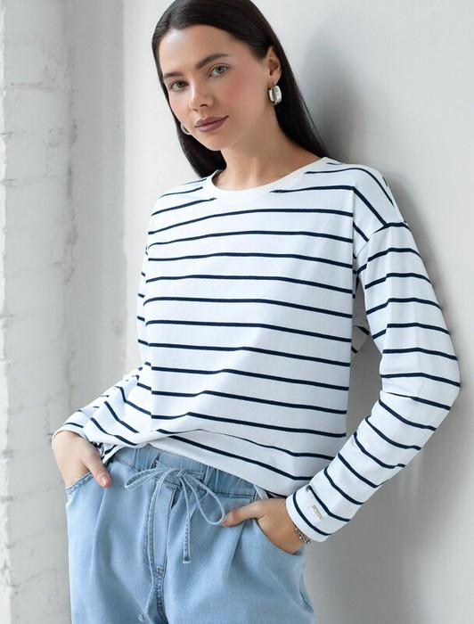 09.04 Vilatte Лонгслив с принтом из премиального хлопка с эластаном D49.148 бел