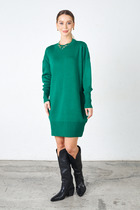 Платье выполнено из премиального хлопка. Трендовый верх как у футболки с карманом, задает лаконичный стиль, а пышный низ вносит в образ романтичный дух. За счет эластана в изделии очень комфортно. Подходит для любой фигуры. Изделие дополнено металлическим логотипом бренда.