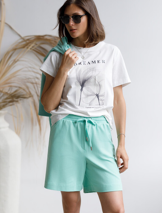 09.04 Vilatte Шорты из тонкого премиального футера с эластаном D48.008 мятный