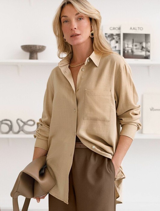 Совместные покупки Курган Женская одежда Блузки, рубашки — 21.04 Vilatte Свободная удлиненная блузка с карманом изо льна с вискозой D29.357