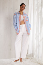 21.04 Vilatte Укороченная блузка из эластичного хлопка D29.322 белый-бежевый