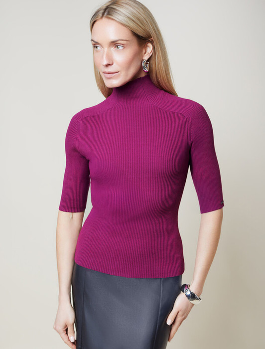 Совместные покупки Курган Женская одежда Джемперы, свитеры, водолазки — 09.04 Vilatte Водолазка тонкой вязки в рубчик из хлопка с нейлоном D34.198 пурп