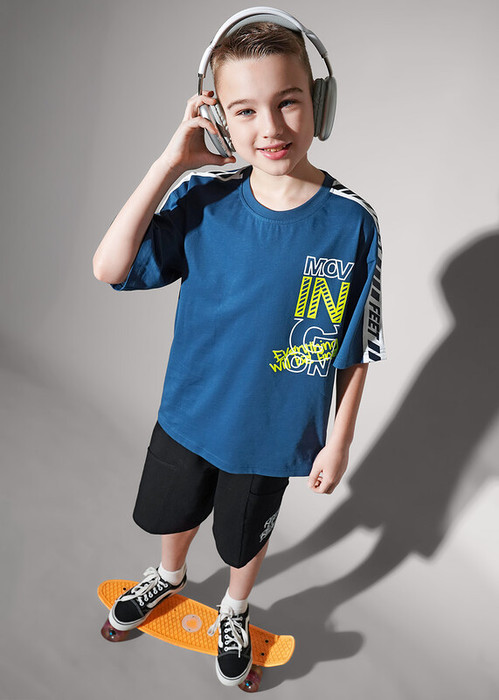 Футболка оверсайз из 100% хлопка в тёмно-синем цвете.Декоративная тесьма на плечах придаёт модели особый стиль, а принт на передней части добавляет индивидуальности. Идеально сочетается с шортами из новой коллекций-готовый образ для активных летних дней!