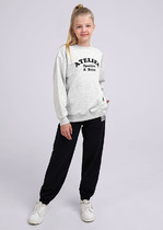 Джемпер для девочки из высококачественного петельчатого футера. Обтачка горловины, манжеты и пояс выполнены из эластичного полотна.