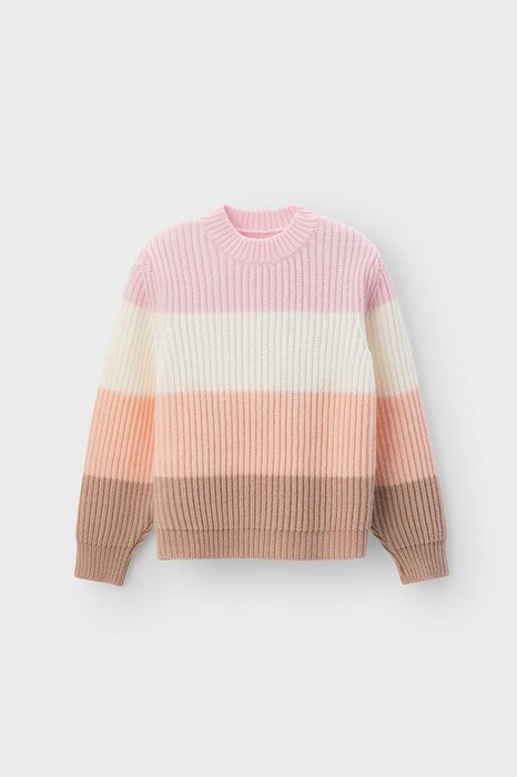 Вязаный джемпер для девочки из мягкой полушерстяной пряжи. Длинные рукава с манжетами. Внизу эластичный пояс. Для удобства изделие застёгивается на пуговицы на плече в размерах 92-104. Изделие сохраняет форму и стойкий цвет после многочисленных стирок.