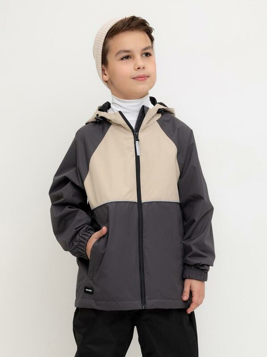 Ветровка для мальчика из мембранной ткани с дополнительной тефлоновой обработкой. Верхняя мембранная ткань 1000/1000 с тефлоновым покрытием отталкивает воду и грязь и обладает «дышащими» свойствами. Подкладка выполнена из сетки, 100% полиэстер. У изделия предусмотрена защита подбородка. Несъемный капюшон утягивается с помощью регулирующего шнура со стопперами. На рукавах эластичные манжеты. Низ изделия регулируется эластичной утяжкой со стопперами. Во всех изделиях верхнего ассортимента для безопасности ребенка предусмотрены светоотражающие элементы.