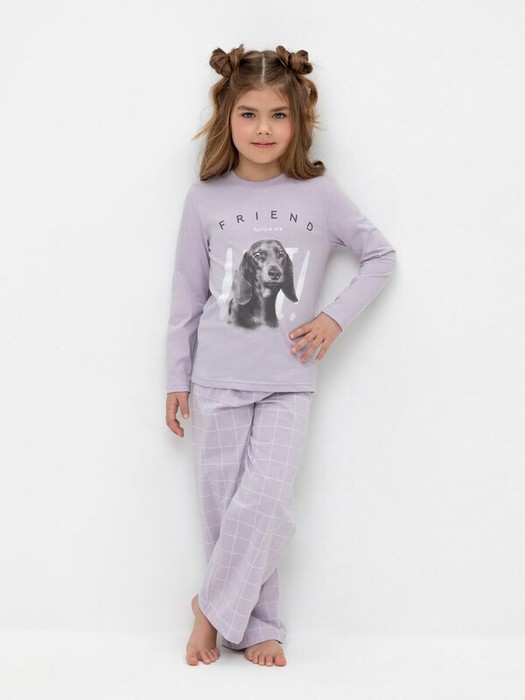 Трикотажная пижама из натурального хлопка. Джемпер с принтом и длинными втачными рукавами. У брюк в комплекте мягкий, эластичный пояс на резинке. Оригинальная набивка выполнена из стойких, гипоаллергенных текстильных красителей. Комплект сохраняет цвет и форму после многократных стирок. Все трикотажные полотна производятся в соответсвии с нормами Швейцарского сертификата ЭкоТекс.