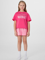 Трикотажная пижама из натурального хлопка. Футболка с короткими втачными рукавами изготовлена из эластичного трикотажа в рубчик. Брюки с эластичной резинкой в поясе выполнены из гладкого трикотажа супрем. Оригинальная набивка выполнена из стойких текстильных гипоаллергенных красителей. Изделие сохраняет цвет и форму после многократных стирок. Все трикотажные полотна производятся в соответсвии с нормами швейцарского сертификата ЭкоТекс.