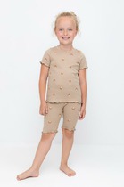 Трикотажная пижама из натурального хлопка для комфортного сна и отдыха. Футболка с короткими спущенными рукавами и прямые брюки с мягкой эластичной резинкой в поясе изготовлены из гладкого трикотажа супрем. Оригинальная набивка и принт выполнены из стойких текстильных гипоаллергенных красителей. Изделие сохраняет цвет и форму после многократных стирок. Все трикотажные полотна производятся в соответствии с нормами швейцарского сертификата ЭкоТекс.