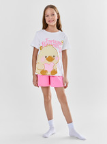 Трикотажная пижама из натурального хлопка для комфортного сна и отдыха. Футболка с короткими спущенными рукавами и шорты с мягкой эластичной резинкой в поясе. Оригинальная набивка и принт выполнены из стойких текстильных гипоаллергенных красителей. Изделие сохраняет цвет и форму после многократных стирок. Все трикотажные полотна производятся в соответствии с нормами швейцарского сертификата ЭкоТекс.