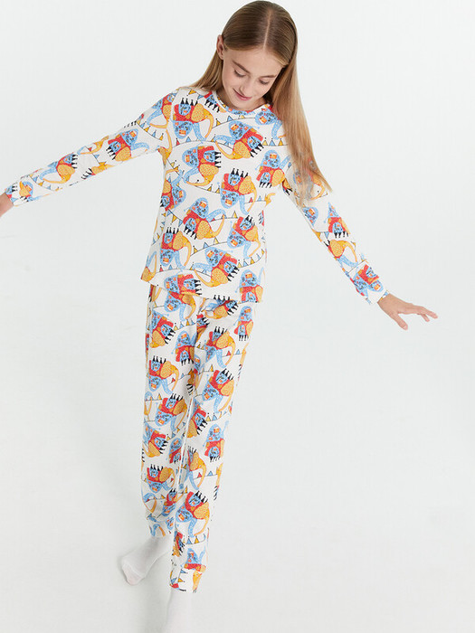 Уютный комплект для девочек, состоящий из джемпера с длинными рукавами и брюк. Джемпер свободного силуэта. Перед и спинка цельнокроеные. Горловина круглой формы из основного полотна. Рукава втачные, низ рукавов с притачными манжетами. Брюки прямые, с притачными манжетами. Пояс с эластичной тесьмой, которая обеспечивает отличную посадку. Стильная и комфортная детская пижама — лучший вариант для прохладного времени года. Широкий размерный ряд, красивые расцветки моделей в линейке. Рекомендуем!