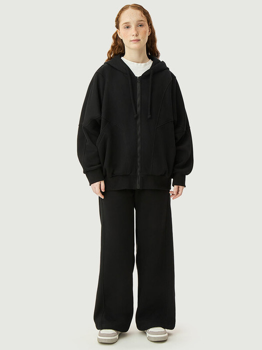 Состоит двух предметов — толстовки и брюк. Толстовка свободного силуэта, с застежкой на молнию, с объемным капюшоном, карманами.  Манжеты и пояс из трикотажного полотна «кашкорсе».