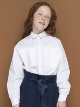 Школьная блузка для девочки свободного кроя. Блузка детская с классическим отложным воротничком. Удобная центральная застёжка на кнопки, имитирующие пуговицы — ребёнок легко и быстро застегнёт и расстегнёт. Фишка модели — глубокие складки, заложенные в верхней части переда. — стильная деталь, выгодно отличающая эту модель от банальных однотонных блузок. В составе ткани преобладает качественный хлопок — блузка в школу для девочки мягкая, воздухопроницаемая и комфортная для ребёнка. Полиэстер помогает не терять форму и отличный внешний вид — изделие прослужит не один сезон. Школьная блузка лаконичного дизайна, без принта, её легко сочетать с различными брюками, юбками, сарафанами. Красивая и практичная блузка белая для девочки — подходит как для повседневной носки, так и для более торжественных случаев. Помните о правильном уходе за изделием: рекомендуется стирать при температуре не выше 30 °C, без предварительного замачивания, с изнанки. Это поможет сохранить качество и цвет блузки на долгое время.