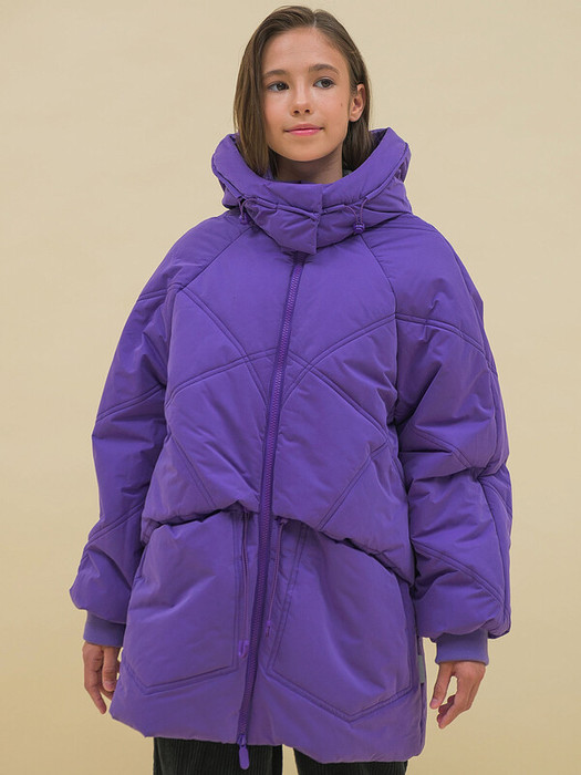 Куртка детская демисезонная на синтепоне для девочек, длиной до середины бедра. Изделие актуального оверсайз-силуэта выполнено из курточной ткани эпонж (шелковистая с шероховатой поверхностью) с водоотталкивающим покрытием — ребёнок не промокнет под дождём. Капюшон двухшовный, что обеспечивает анатомически правильную форму и комфортную посадку по голове. Высокое забрало создаёт ощущение тепла и уюта. Капюшон не отстегивается, застёгивается на скрытые магниты — ребёнку просто застёгивать и расстёгивать. Предусмотрена регулировка объема эластичными шнурами с пластиковыми стопперами. Центральная застёжка на пластиковую тракторную молнию, разъёмную с двух сторон — удобно садиться, пуллеры металлические, прочные. Куртка тёплая — дополнительно, для защиты от ветра и холода, центральная молния с изнаночной стороны закрыта ветрозащитной планкой. Рукава кроя реглан по низу собраны на манжеты из эластичной рибаны (ткань в рубчик) — они препятствуют задуванию ветра, при этом рибана долго сохраняет эластичность, не растягивается. Различные сочетания двойной стежки на разных деталях куртки являются самыми модными трендами этого сезона. Верхняя часть переда имитирует надетый поверх жилет со стежкой-ромб — оригинальная и стильная деталь, которую по низу можно собрать с помощью эластичного шнура со стопперами. Куртка стёганая дополнена большими накладными карманами оригинальной формы — практично и эффектно! Внутри также есть карман на молнии — удобно спрятать телефон. По низу изделия предусмотрена регулировка объёма на эластичный шнур с пластиковыми фиксаторами. В каждой куртке нейм-лейбл! Ребенок не потеряется и не потеряет куртку! На спинке и капюшоне расположены светоотражающие элементы — безопасность в тёмное время суток. За изделием просто ухаживать. Модель без принта. Куртка выполнена из полиэстера (+мембраны) — она тёплая, не промокает, легко стирается, быстро сохнет, сохраняет отличную форму и цвет надолго. Подкладка в капюшоне и по стану куртки из трикотажа, в составе которого преобладает высококачественный хлопок  — он мягкий, приятный на ощупь. В рукавах подкладка из полиэстера —  благодаря этому ребенку легко надевать куртку, руки не путаются в рукавах. Куртка выполнена из материала трендового фиолетового цвета. Её легко сочетать с различными брюками, юбками, колготками. Размерный ряд: 2 (92); 3 (98); 4 (104); 5 (110); 6 (116); 7 (122); 8 (128); 9 (134); 10 (140); 11 (146). Куртка подходит маленьким девочкам дошкольного и младшего школьного возраста, а также девочкам-подросткам. Идеальная куртка на осень и весну (демисезон). Рекомендуемый температурный режим: не ниже минус 15 градусов. Утеплитель: синтепон 200 г/м2. Модель подходит для носки в детский сад, школу, для прогулок и отдыха. Куртка водоотталкивающая утеплённая — отличный подарок для дочери или внучки на любой праздник.