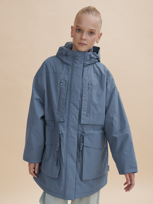 Парка для девочки с температурным режимом не ниже +5°С прямого свободного силуэта. Мягкий оверсайз. Ветровка на флисовом подкладе (верх переда и спинки, подклад капюшона из флиса, а нижняя часть переда и спинки и подкладка рукава из 100% POLY + синтепон 40г/м2 ). Мембранная ткань хорошо защищает нижние слои одежды от намокания. Структура мембранной ткани позволяет коже дышать - ребенок легко двигается и не переохлаждается. Изделие сохраняет первоначальный внешний вид даже при активной носке. Водоотталкивающая пропитка или  DWR (Durable Water Repellent) – «устойчивое водоотталкивающее покрытие» - защищает от промокания под дождем: материал не утяжеляется под воздействием влаги, позволяя свободно пропускать воздух.  Низ рукава прямой, внутри рукава расположена скрытая манжета из мягкой эластичной ткани.