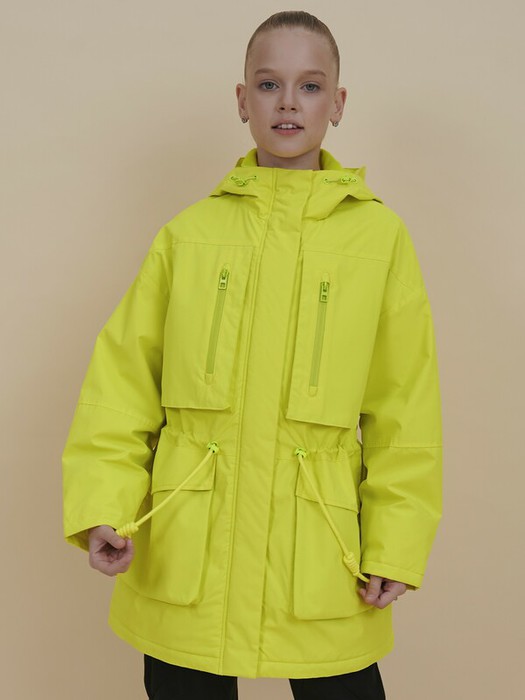 Парка для девочки с температурным режимом не ниже +5°С прямого свободного силуэта. Мягкий оверсайз. Ветровка на флисовом подкладе (верх переда и спинки, подклад капюшона из флиса, а нижняя часть переда и спинки и подкладка рукава из 100% POLY + синтепон 40г/м2 ). Мембранная ткань хорошо защищает нижние слои одежды от намокания. Структура мембранной ткани позволяет коже дышать - ребенок легко двигается и не переохлаждается. Изделие сохраняет первоначальный внешний вид даже при активной носке. Водоотталкивающая пропитка или  DWR (Durable Water Repellent) – «устойчивое водоотталкивающее покрытие» - защищает от промокания под дождем: материал не утяжеляется под воздействием влаги, позволяя свободно пропускать воздух.  Низ рукава прямой, внутри рукава расположена скрытая манжета из мягкой эластичной ткани.