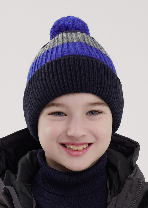 13.01 Clever Шапка детская для мальчика CLE 454475ап флис т.синий/синий