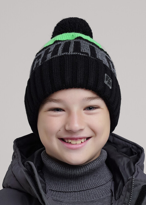 13.01 Clever Шапка детская для мальчика CLE 454508ап флис чёрный/зелёный