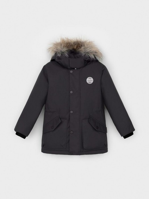 Зимняя парка для мальчика с утеплителем  SEE®: 250 г/м2. Выполнена из мембранной ткани с дополнительной тефлоновой обработкой, которая предохраняет изделие от загрязнений и отталкивает влагу. Подклад выполнен из 100% полиэстера Tricot. Парка застёгивается на молнию и внешнюю планку с металлическими кнопками, предусмотрена защита подбородка. Съёмный капюшон на кнопках и липучках имеет эластичную утяжку со стопперами и отстёгивающуюся опушку из искусственного меха. На рукавах внутренние эластичные манжеты. Два накладных кармана с клапанами по бокам. По талии эластичная утяжка со стопперами. Во всех изделиях верхнего ассортимента для безопасности ребёнка предусмотрены светоотражающие элементы.