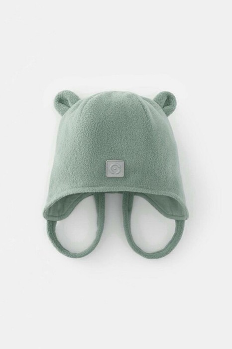 Флисовая шапка на завязках с мягким подкладом из натурального хлопка. Сверху украшена декоративными ушками из флиса. Спереди прикреплён светоотражатель, который обеспечивает дополнительную безопасность в тёмное время суток. Шапка сохраняет цвет и форму после многократных стирок.