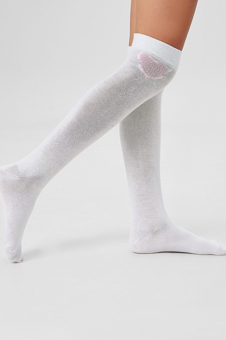 Рис.3335 Детские однотонные гольфы c рисунком в виде сердечка и печатью стразами.