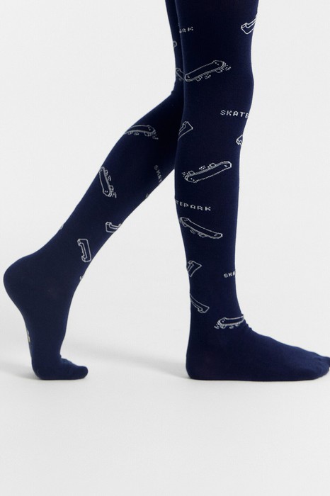 Гладкие колготки с рисунком в виде скейтов.
