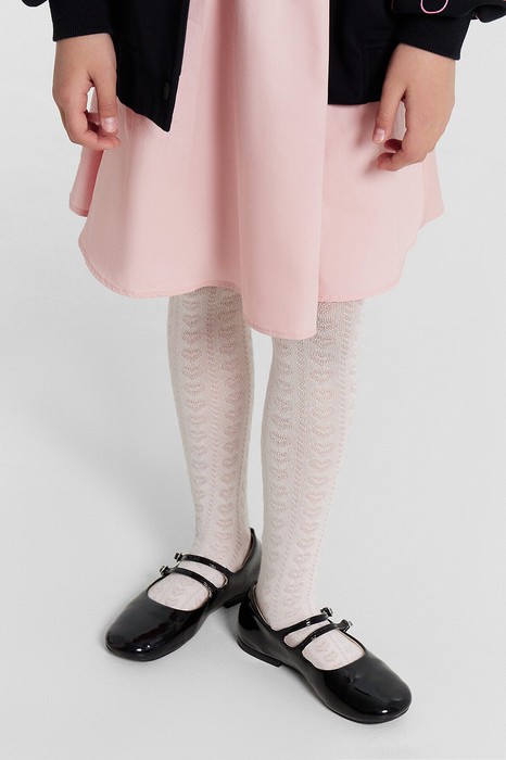 Рис.2795 Гладкие колготки с рисунком в виде сердечек, выполненным перекидным переплетением.