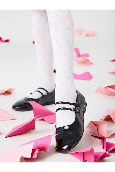 Рис.3219 Колготки гладкие с рисунком в виде крупного горошка, выполненым перекидным переплетением.