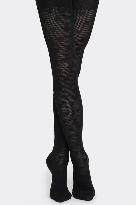 Рис.1660 Гладкие колготки с рисунком в виде сердечек сетки по всей колготке.
