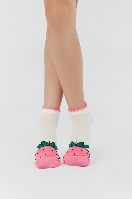 рис.3205 Детский укороченный носок с рисунком в виде клубники.