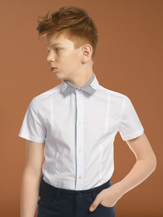 Ткань хорошо держит форму, пропускает воздух и легко разглаживается. А внутренняя контрастная отделка воротника избавит вас от частых стирок.